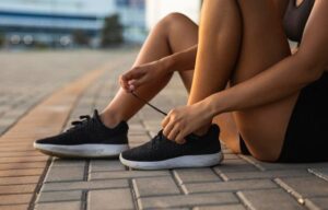 Material alas kaki juga berperan penting. Bahan yang fleksibel, bernapas, dan ringan meningkatkan kenyamanan serta mengurangi risiko lecet atau cedera kulit. Sementara sol yang kokoh dan memiliki grip baik membantu menjaga keseimbangan dan mencegah tergelincir. Selain itu, bantalan pada tumit dan telapak kaki mampu menyerap tekanan berlebih, sehingga lutut dan sendi lain tidak terbebani secara langsung.
